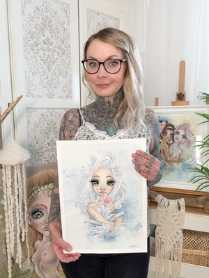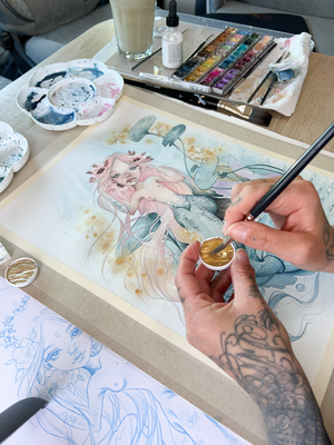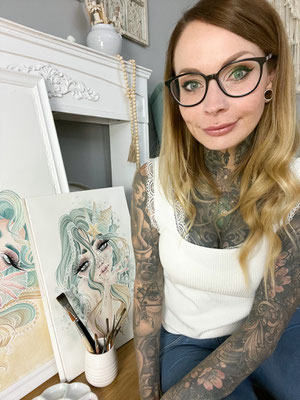 Meine Leidenschaft ist es, diese magischen Wesen zeichnerisch zum Leben zu erwecken. Mit Ölfarben auf Naturleinwand oder in zarten Aquarelltönen erschaffe ich Traumwelten, die Surrealismus, Fantasy, Manga und Comic miteinander verbinden. Entstehen dürfen dabei mystische Ladys, verspielte Wassernixen, märchenhafte Prinzessinnen, süße Elfen, zauberhafte Feen und kraftvolle Amazonen.